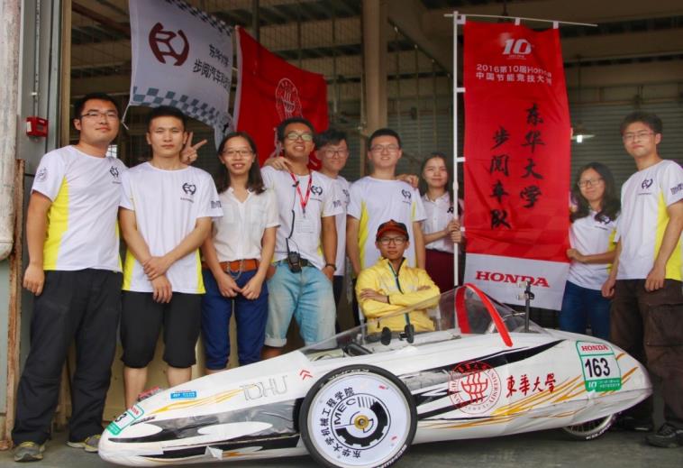 步阅节能车队以步阅汽车科技协会为基础,组建于去年11月,车队成员为beat365官网机械工程及工业设计专业大二、大三、大四的同学。同学们利用课余时间,主动放弃暑假休息,积极主动投入到赛车的设计、制作、调校测试中。准备比赛过程中,同学们认真研究,大胆创新,先后完成了发动机的改装调校、转向机构优化、气动离合器设计,并结合碳纤维成型技术、3D打印技术设计制作了碳纤维车架、航空布料车身,在确保赛车强度、安全性能的同时大大降低了赛车自重。这一系列的创新设计,得到了Honda工程师们的高度赞赏。