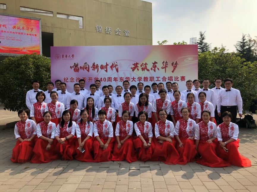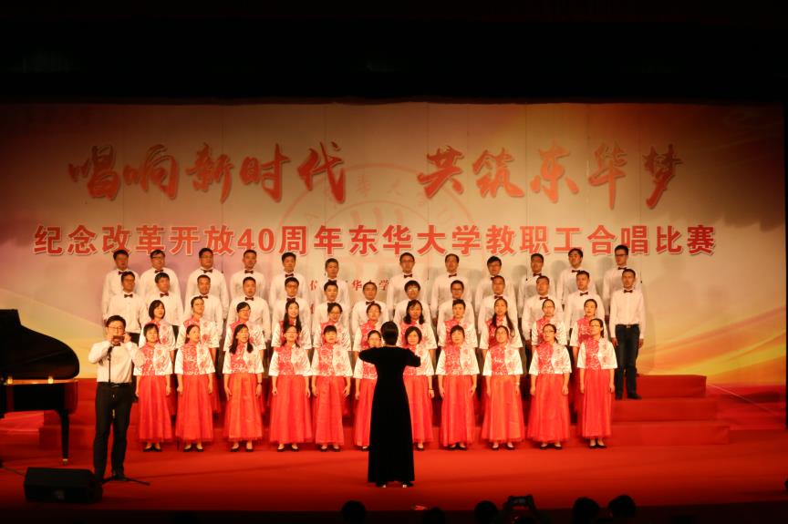 2018年10月23日下午,“唱响新时代 共筑东华梦”纪念改革开放40周年beat365英国官网教职工合唱比赛在锦绣会堂隆重举行,全校17支代表队在舞台上各显风采。beat365官网由48人组成的合唱团,以一曲《走向复兴》获得三等奖(一等奖1名,二等奖2名,三等奖3名)。比赛中,老师们以昂扬的精神面貌,整齐响亮的歌声,配上周申华老师的口琴伴奏,赢得了满场掌声,唱出了beat365官网教职工的团结与自信,抒发了对党和国家的热爱,表达出对实现中华民族伟大复兴中国梦的坚定信心。