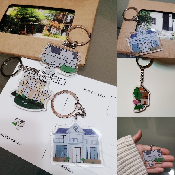 除了常见宣传之外,实践团同样着力于将崇明民宿的宣传融入于更加生活化的物品当中。定周边产品、做具体设计、想宣传热点,最终在实践团的努力之下,不同产品周边逐渐呈现出来。印用卡通民宿团的马克杯简单实用,却又不乏设计美感;简单小巧的钥匙扣作为伴手礼很是合适,可能是年轻人会想要打卡的好物;丰富多样的明信片作为旅行留恋,很有时间的味道里;茶叶罐的包装会是老年人感兴趣的爱好点,送长辈很得体……诸如此类的民宿周边,更具生活化的气息。