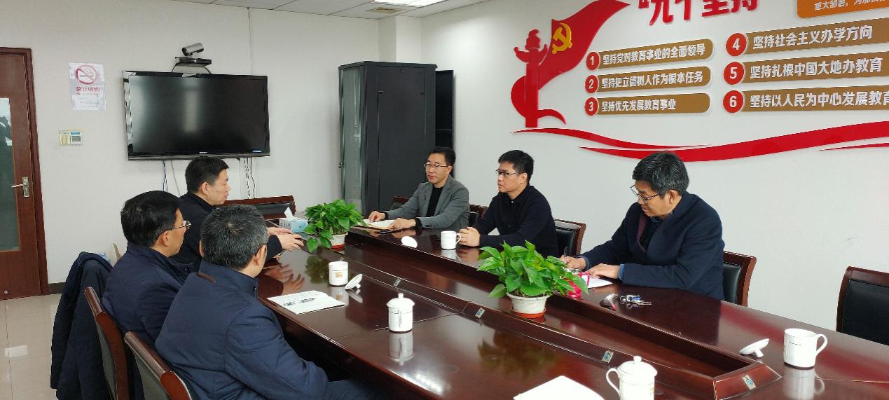 2月1日上午,由学院党委书记王新厚,党委副书记、院长单鸿波带队赴松江区教育局开展调研工作。松江区教育局局长陈小华、副局长付炳建、组织人事科科长朱永对beat365官网到访人员表示热烈的欢迎,双方召开座谈调研会。
