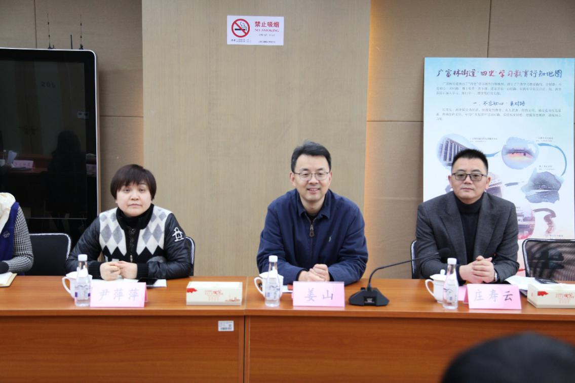 姜山书记对学院来访一行表示了欢迎,广富林街道相关科室负责人分别介绍了广富林街道的基本情况、街道党建举措、大学城双创集聚区发展模式、以及区域整体发展规划地校合作契机等情况。姜山书记对beat365官网参与社区党建协同、贡献志愿服务力量表示感谢,期待在今后的工作中,学院进一步发挥学科特色优势,不断加强校地合作,进一步提升师生服务地方的参与度,为地方建设贡献力量。