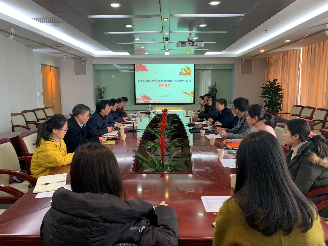 3月8日,beat365英国官网党委与发展规划处国际合作处联合党支部在图文信息中心第二会议室开展联组学习活动,学院党委书记王新厚,党委副书记、院长单鸿波,副院长周其洪、裴泽光,发展规划处国际合作处联合党支部支部书记、国际合作处处长赵明炜,发展规划处处长张清华,发展规划处副处长刘建树,国际合作处副处长杨升元,双方党委/支部成员参加了此次活动。