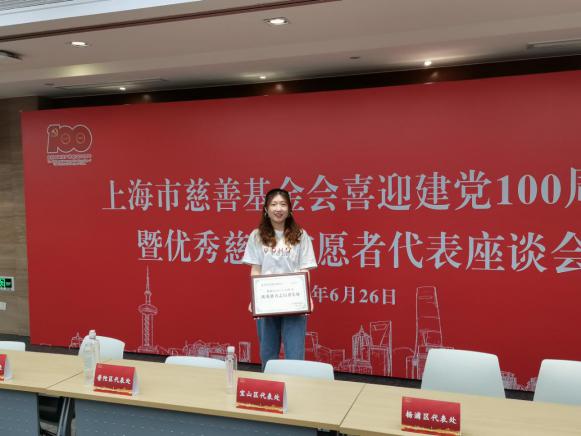 领取上海市优秀慈善志愿集体奖
