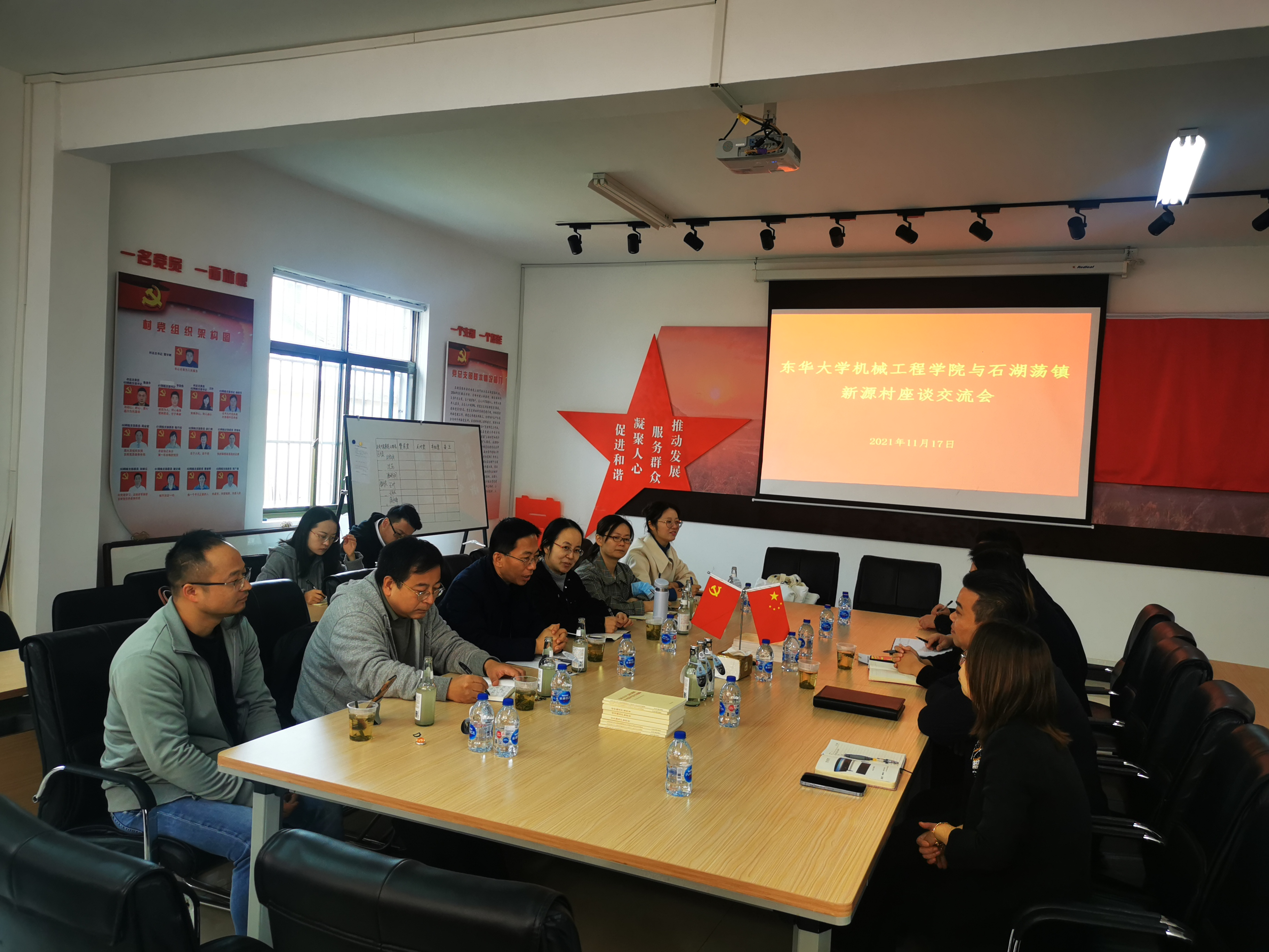 1117日,由机械学院党委书记王新厚带队一行前往石湖荡镇新源村开展专项调研交流,新源村党总支书记曹宇辉、新源村党总支副书记、村委会主任王叶等村两委班子成员陪同接待并与王书记一行座谈交流。党委副书记李宁蔚、工业设计系主任周丰、工业设计系莫伟平、学生工作办公室主任安晴晴、副主任胡敏等专职辅导员一同参加调研。