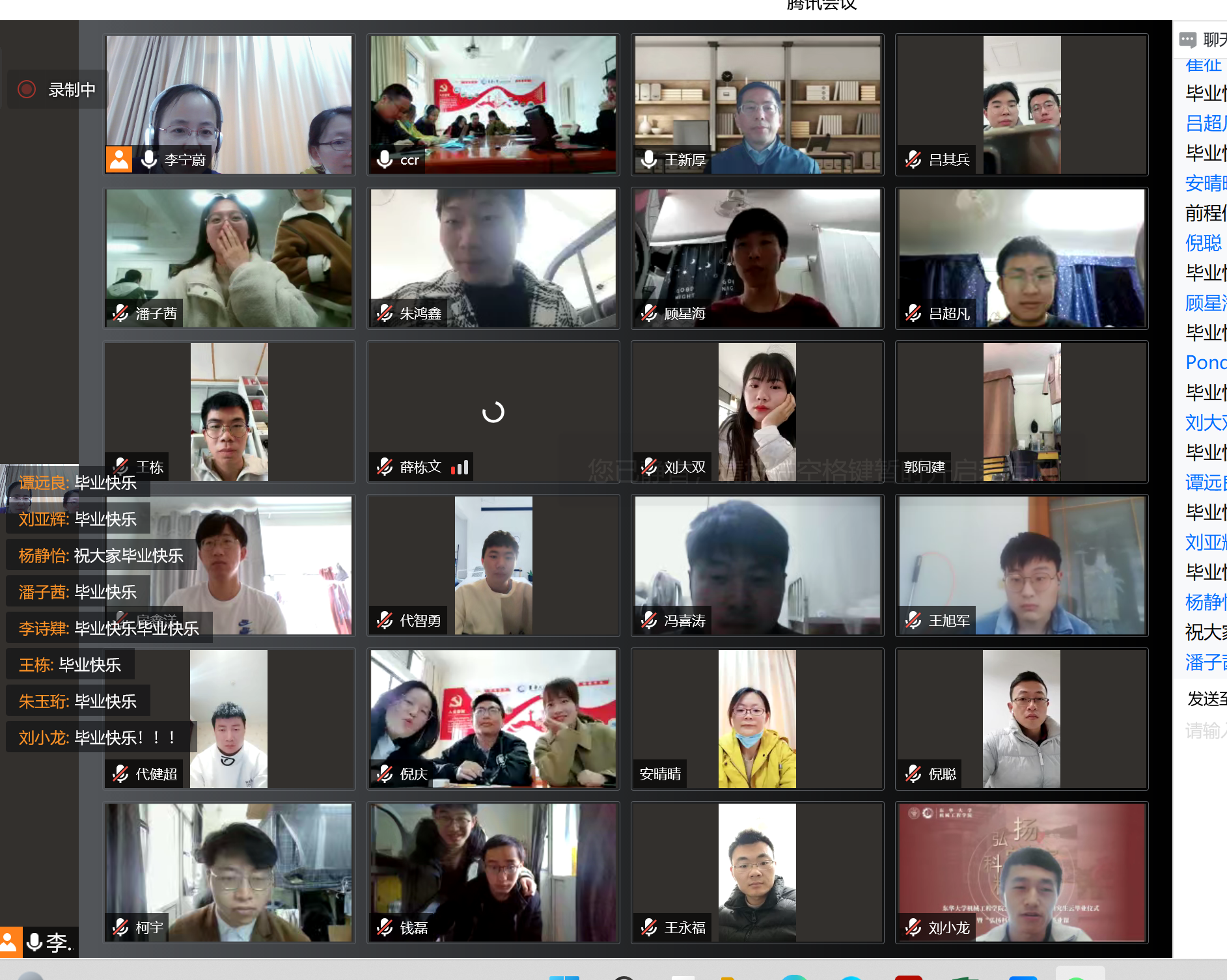 云毕业仪式上,播放了毕业班学生精心制作的毕业视频《珍重•再见》,一张张过往的照片,一段段饱含深情和希冀的话语,都是对过往研究生生活最美好的纪念。云毕业仪式在“云合照”中结束,同学们在云端告别,怀揣信念、才华与梦想,去把青春华章写在祖国的大地上。