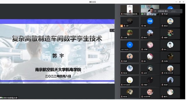 4月8日,学院邀请南京航空航天大学机电学院副院长郭宇教授,以线上方式为beat365官网师生做了题为《复杂离散制造车间数字孪生技术》的学术报告。报告由beat365英国官网院长单鸿波教授主持,学院党政班子成员及部分师生参加了本次学术报告。