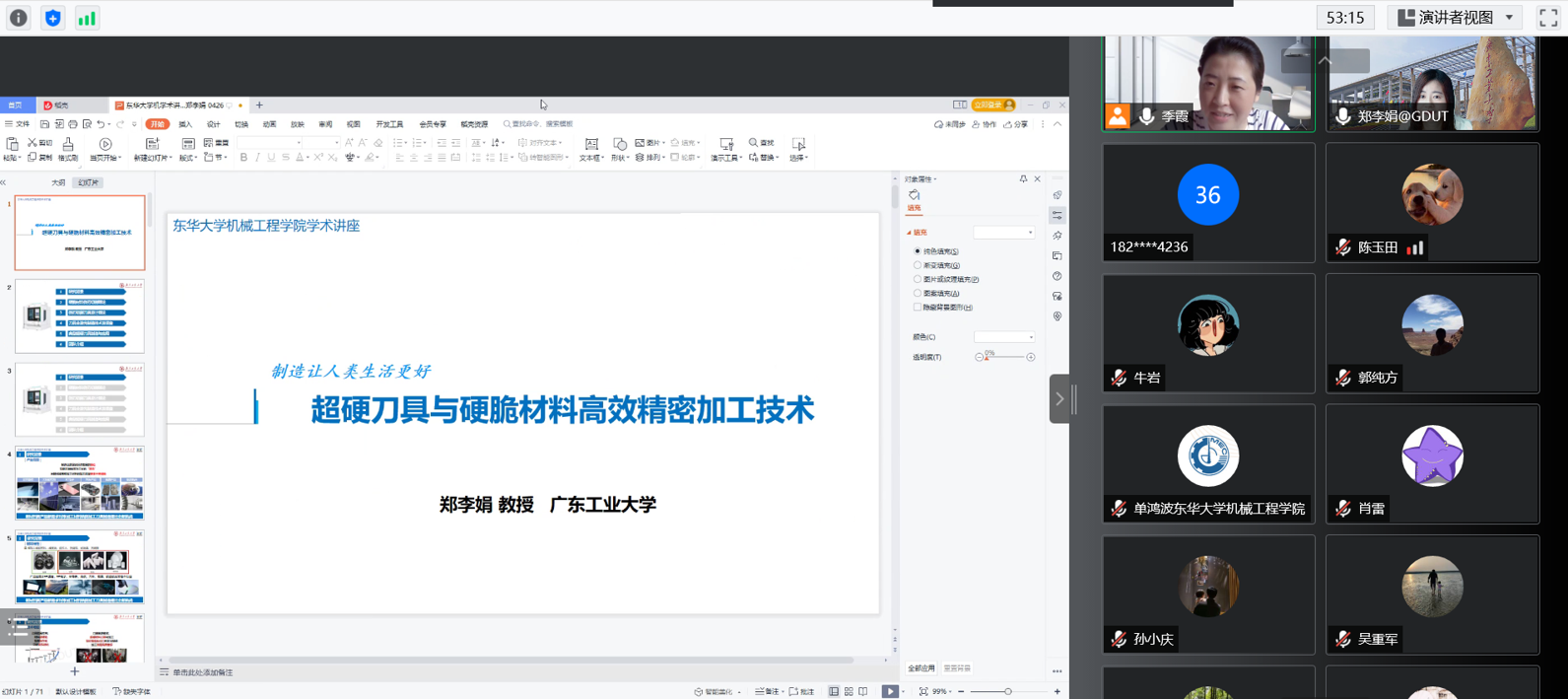 4月26日,国家优秀青年科学基金获得者郑李娟教授受邀为beat365官网做题为《超硬刀具与硬脆材料高效精密加工技术》的学术报告。院长单鸿波、部分中青年教师、行业技术专家、博硕士研究生等线上参加了本次报告会。报告会由院务委员季霞老师主持。