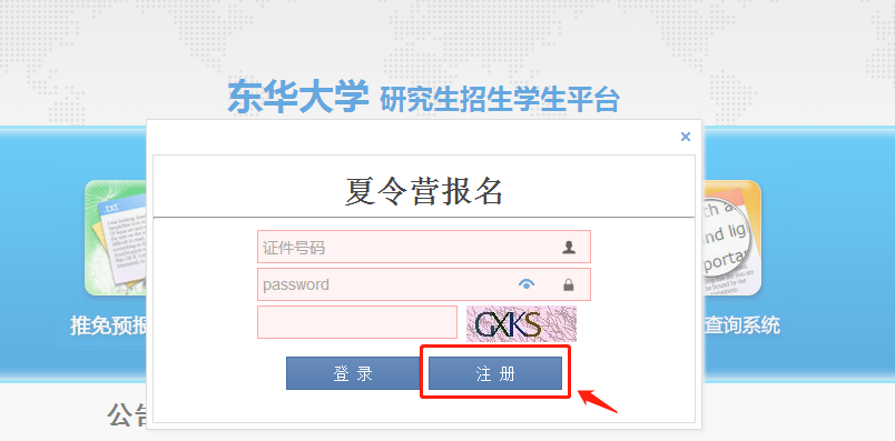 一、登录beat365英国官网研究生招生学生平台(https://yzks.dhu.edu.cn/) 、选择并点击“夏令营报名”。(平台开放时间:工作日9:00-16:00)