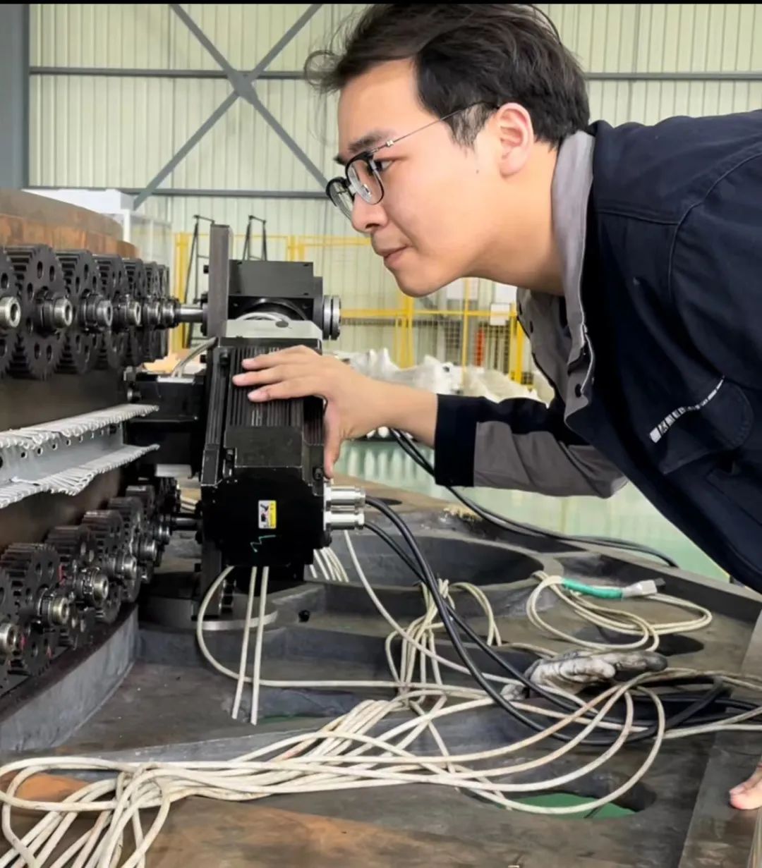 第一次项目任务的顺利完成,给李麒阳树立了实现高水平科技自立自强的信心和勇气。后续他又在导师的带领下,积极投身到轨道交通重要结构件的复合材料实验研究中去。由于轨道交通结构件尺寸较大,使用常规编织机及牵引装置进行编织效果不佳,针对这一问题,他与团队开发出国内首套由双机器人协同牵引装置配合大型变轨编织机的自动化控制系统,解决了大尺寸异形结构件编织过程精度不高的痛点,保证了产品的力学性能。