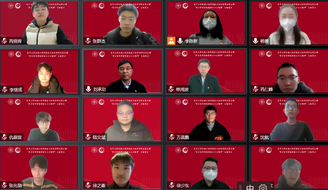 会上,党支部书记李陈新以《聚焦“三个维度”,打造支部学习教育高地》为主题,从“强引领”“深推进”“促提升”三个维度分享了支部在学习贯彻党的二十大精神学习过程中,坚持引导党员培育卓越匠心,主动担当作为,争做新时代的追梦人。支部党员芮绕青生动讲述了在党建引领下,党支部与团支部共建学习所取得的成效,并结合自己参与科创竞赛的经历,分享了学习党的二十大精神的收获体会。支部党员仇薛宸作为学院第一届智能制造专业学生分享了我国制造业发展的现状,并且立志在制造强国建设中积极贡献青春力量。