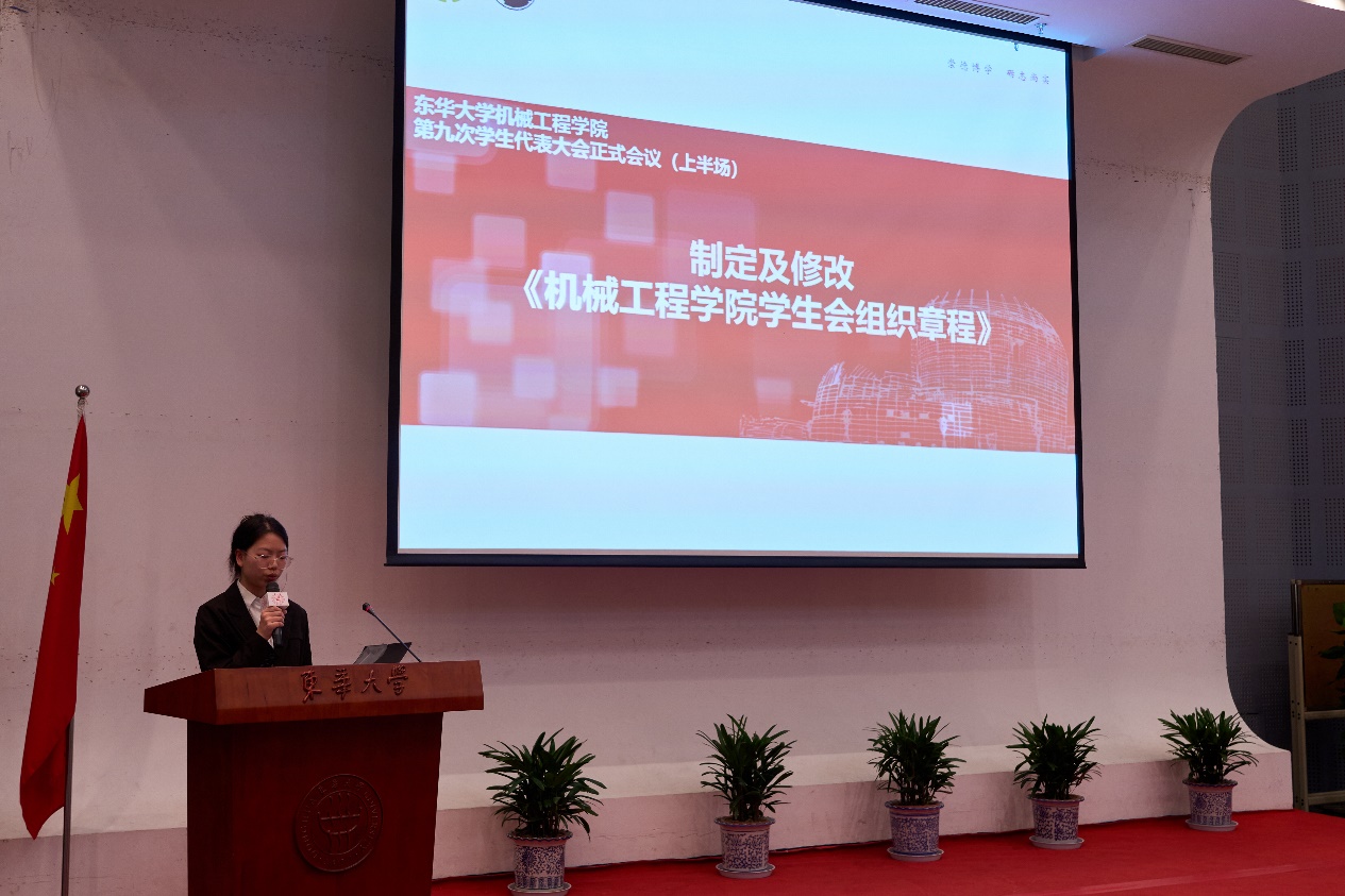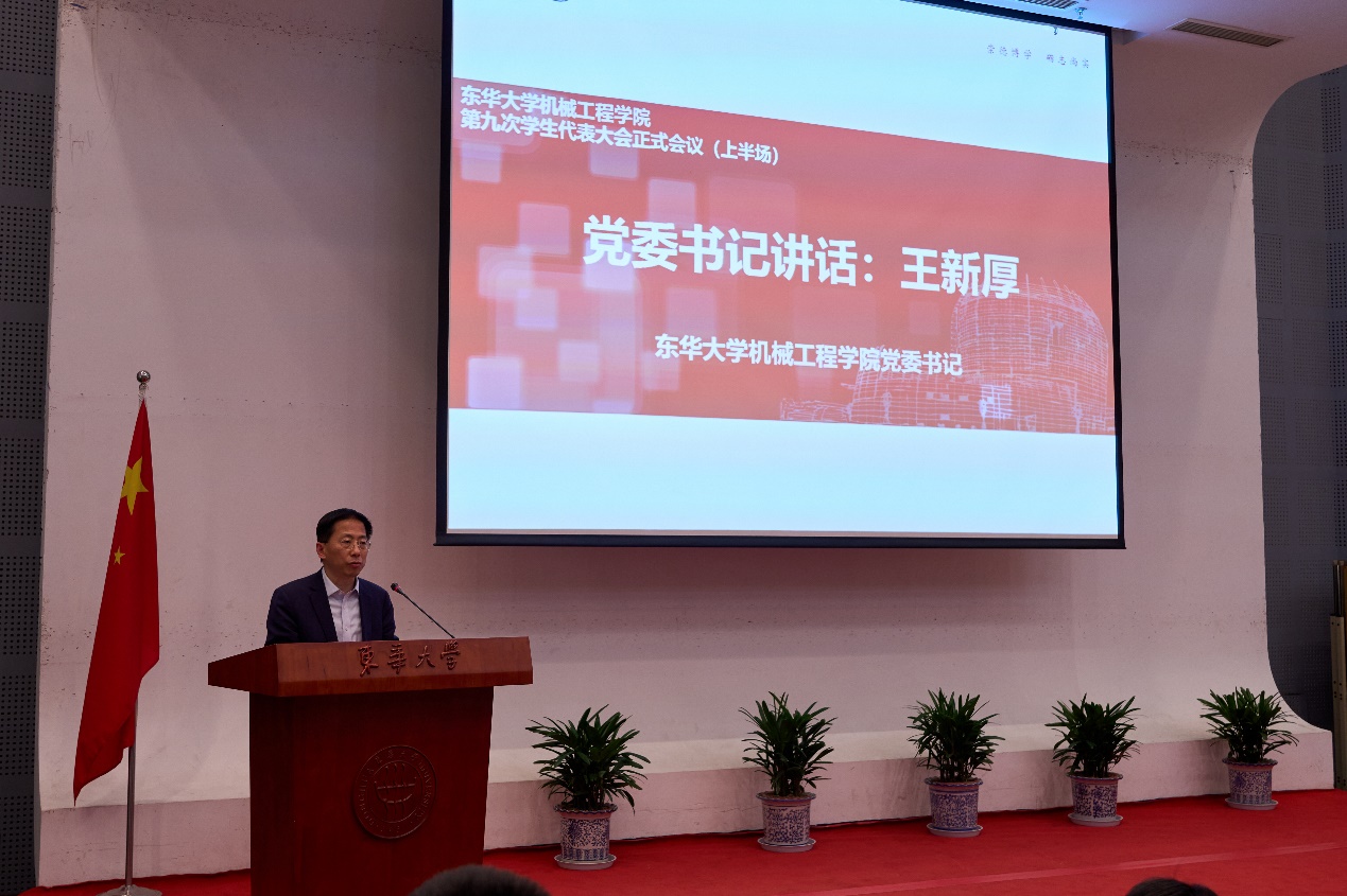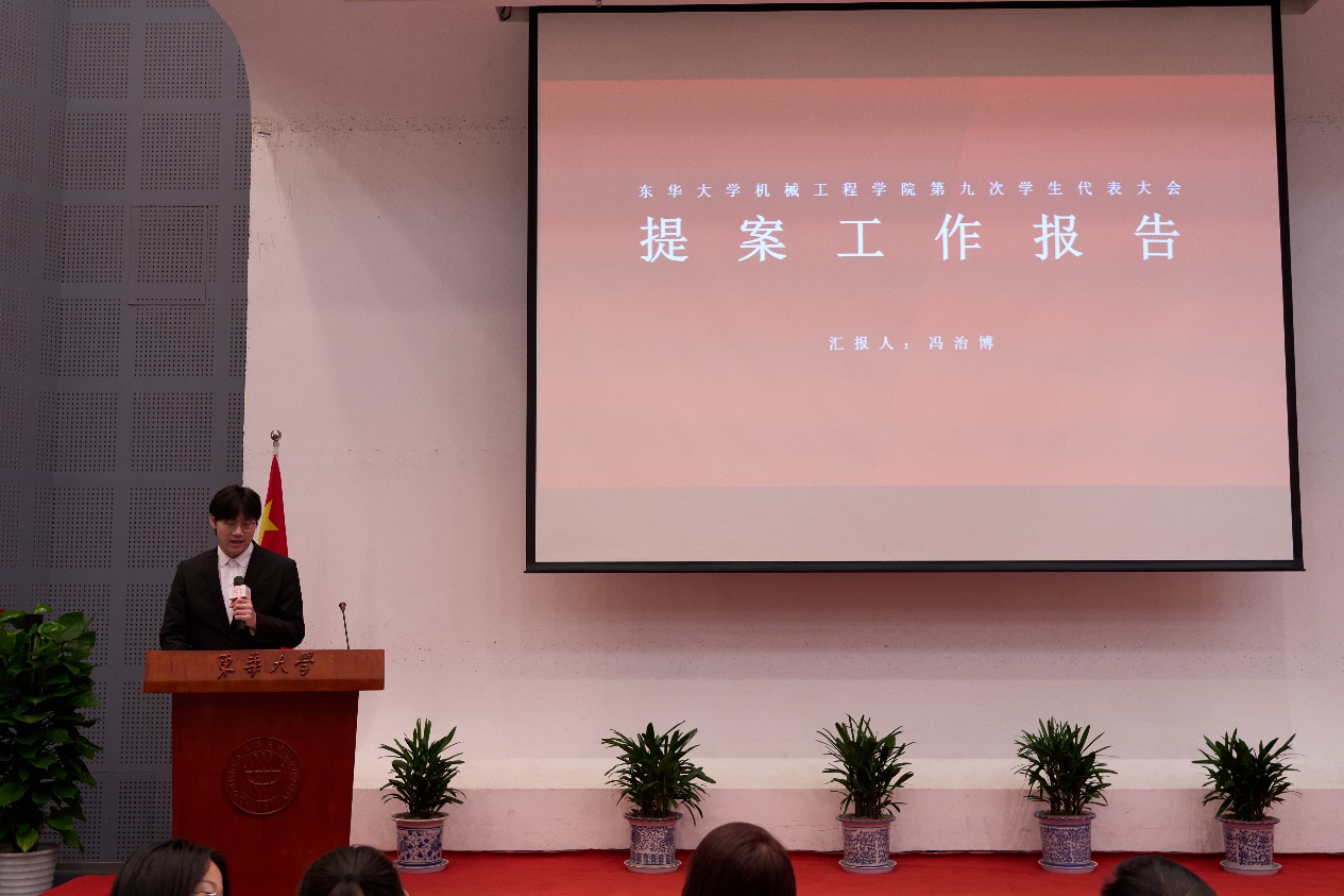 5月14日,beat365英国官网第九次学生代表大会在松江校区图文信息中心第二报告厅举行。beat365英国官网党委书记王新厚、党委副书记杨蓉、学生工作办公室副主任胡敏、团委书记王晓晖、副书记姜雪梅、学院专职辅导员23级年级组长叶圣华、专职辅导员徐少东、校团委学生兼职副书记唐伟、校学生会主席李一鸣、学院兼职辅导员校团委志工部部长张学晖、学院兼职辅导员段健琦、武晓蒸,机械学院全体学生代表、兄弟学院学生会代表与会。会议听取和审议机械学院学生会工作报告,听取和审议学代会提案工作报告,选举产生beat365英国官网第九届学生委员会委员和学生会新一届主席团。