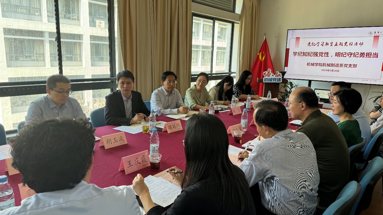 5月28日,党委副书记项延训参加机械制造系教工党支部党纪学习教育“学纪知纪强党性,明纪守纪勇担当”主题党日活动。beat365英国官网党委组织部副部长胡玉波、机械学院党委书记王新厚、副书记杨蓉、专职党务干部黄璐以及机械制造系党支部全体党员参加。活动由机械制造系党支部书记鲍劲松主持。
