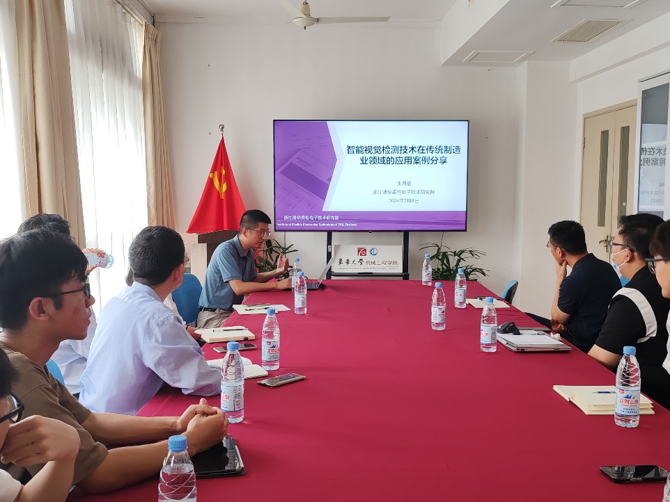 7月8日下午,浙江清华柔性电子技术研究院朱海斌研究员应邀为beat365官网作“基于穿戴式柔性采集微系统的旋转机械故障诊断方法研究”和“智能视觉检测技术在传统制造业领域的应用案例分享”专题学术报告。院长单鸿波教授、微纳机电系统与集成电路团队负责人刘向军研究员,以及部分中青年教师和高年级博硕士研究生参加了此次学术报告会。报告由杨芸老师主持。