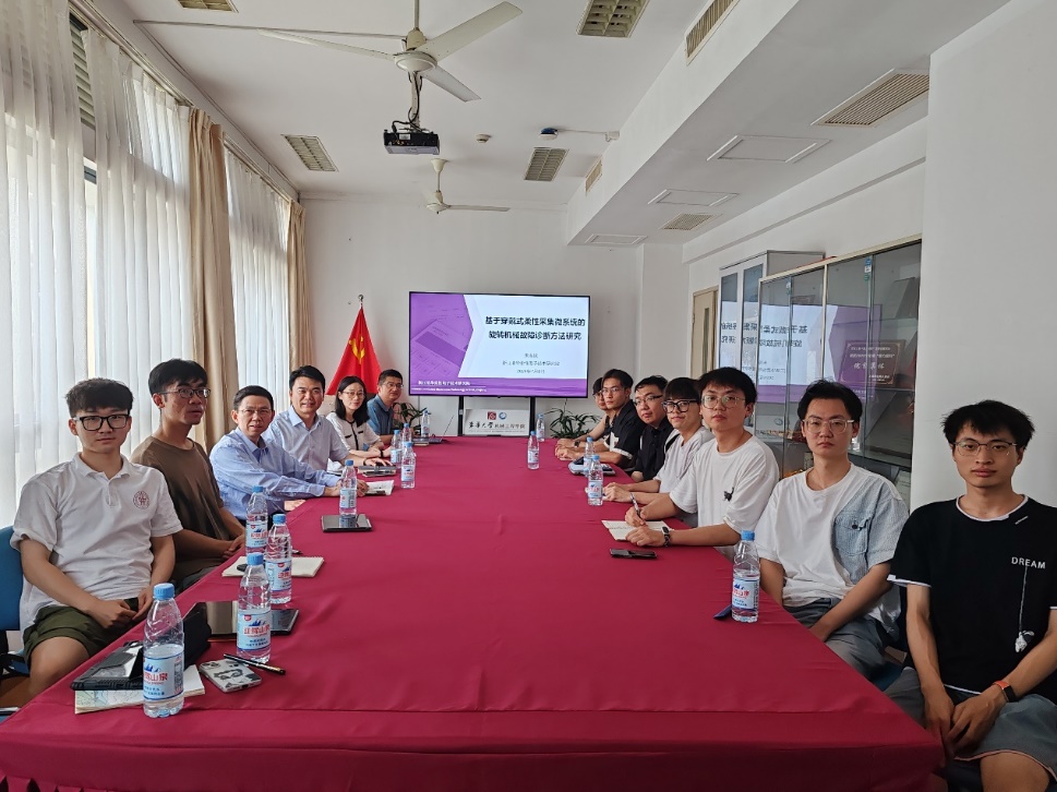 朱海斌研究员以柔性采集微系统下的旋转机械故障诊断为题,充分利用柔性电子的轻、薄、柔、小等优势,向参会师生展示了面向高速旋转机构运行状态原位监测的柔性微系统,实现了与转子结构的原位共形采集、无线供电及信号高速传输等关键功能,并结合浙江清华柔性电子技术研究院孵化企业-迈沐智能在传统制造业领域的智能视觉检测应用,详细介绍了相关成果在皮革、电池片网版检测应用中的成功案例。与会师生围绕本次学术报告内容进行了深入的交流和探讨。