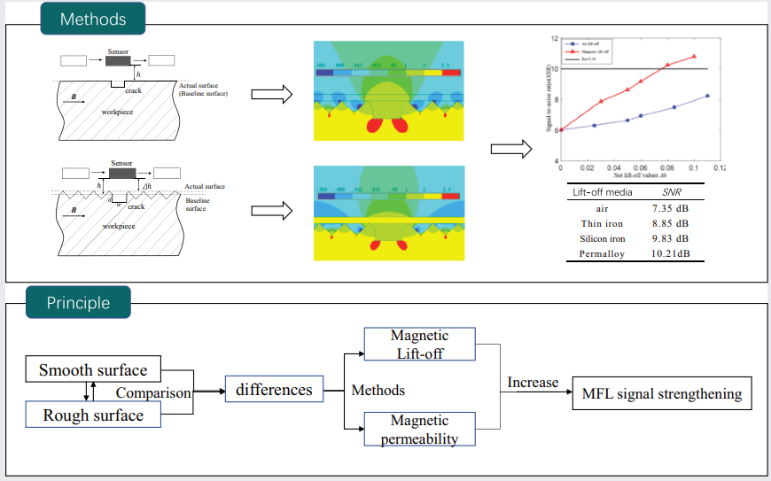 安全结构件广泛应用在机械装备、汽车高铁、核工业、航空航天等领域,其质量和可靠性直接影响着运行安全,裂纹等缺陷的存在会导致重大安全事故,甚至人员伤亡和财产损失。安全结构件在缺陷检测精度和检出率方面更为严格,要求0漏检。随着裂纹检测精度要求的提高,工件表面形貌特征对微裂纹信号检出能力的影响不容忽视,杨芸副教授提出了基于提离介质磁特性的粗糙表面微裂纹信号信噪比提升方法,该成果以“A new SNR enhancement method in MFL detection for microcracks on rough surface based on the ferromagnetic lift-off layer为题发表于该领域国际知名期刊Nondestructive Testing and EvaluationIF=3),beat365英国官网为唯一通讯作者单位,杨芸副教授为该论文的第一作者。文章链接:DOI:10.1080/10589759.2024.2357229