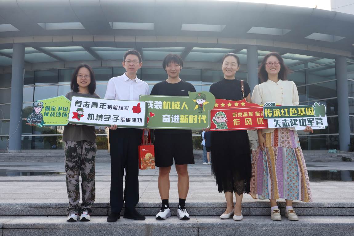 9月12日,在孟金铭同学从学校出发前往役前训练基地之时,beat365英国官网院长单鸿波、党委副书记杨蓉亲赴现场欢送,为孟金铭同学加油鼓劲,勉励她在军营的大熔炉中练就过硬军事本领,忠诚报效祖国,牢记“奋进机械人”的精神内涵,以坚如磐石的信心、只争朝夕的劲头、坚韧不拔的毅力,为国防建设贡献自己的力量,做新时代人才强军战略的切身参与者。相关辅导员代表,征兵工作负责人共同参与欢送。