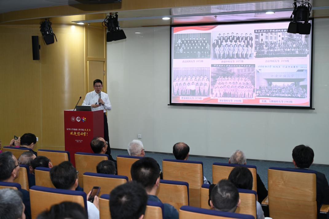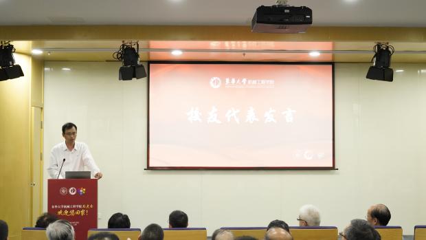 84级纺织机械专业校友、沈阳宏大华明纺织机械有限公司总经理杨立家先生,2004级机械专业校友、中国商飞上海飞机制造有限公司制造工程技术中心部长助理林祖伟先生分别作为值年校友代表发言。校友代表们回顾在华纺学习的岁月,“崇德博学、砺志尚实”校训一直激励着校友们为国家发展、中华民族复兴做出更大贡献。