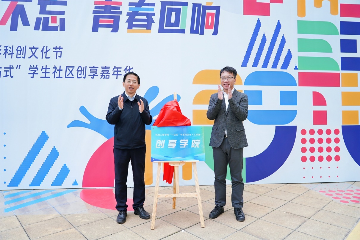 李成龙与王新厚共同为机械学院“创享学院”——“一站式”育人社区揭牌,并参观了学生科技社团科创成果展。观展过程中,李成龙充分肯定了学生的科创热情,并表示学生社区作为学生成长实践的重要空间,承载着思想政治教育、校园文化建设等多方面的价值效应,要注重发挥学生社区的育人价值,落实立德树人根本任务,同时,他强调,学生要学会依托科技创新竞赛、学生社团等平台,着力强化综合素质能力、创新创业能力的培养,努力成为德智体美劳全面发展的时代新人。