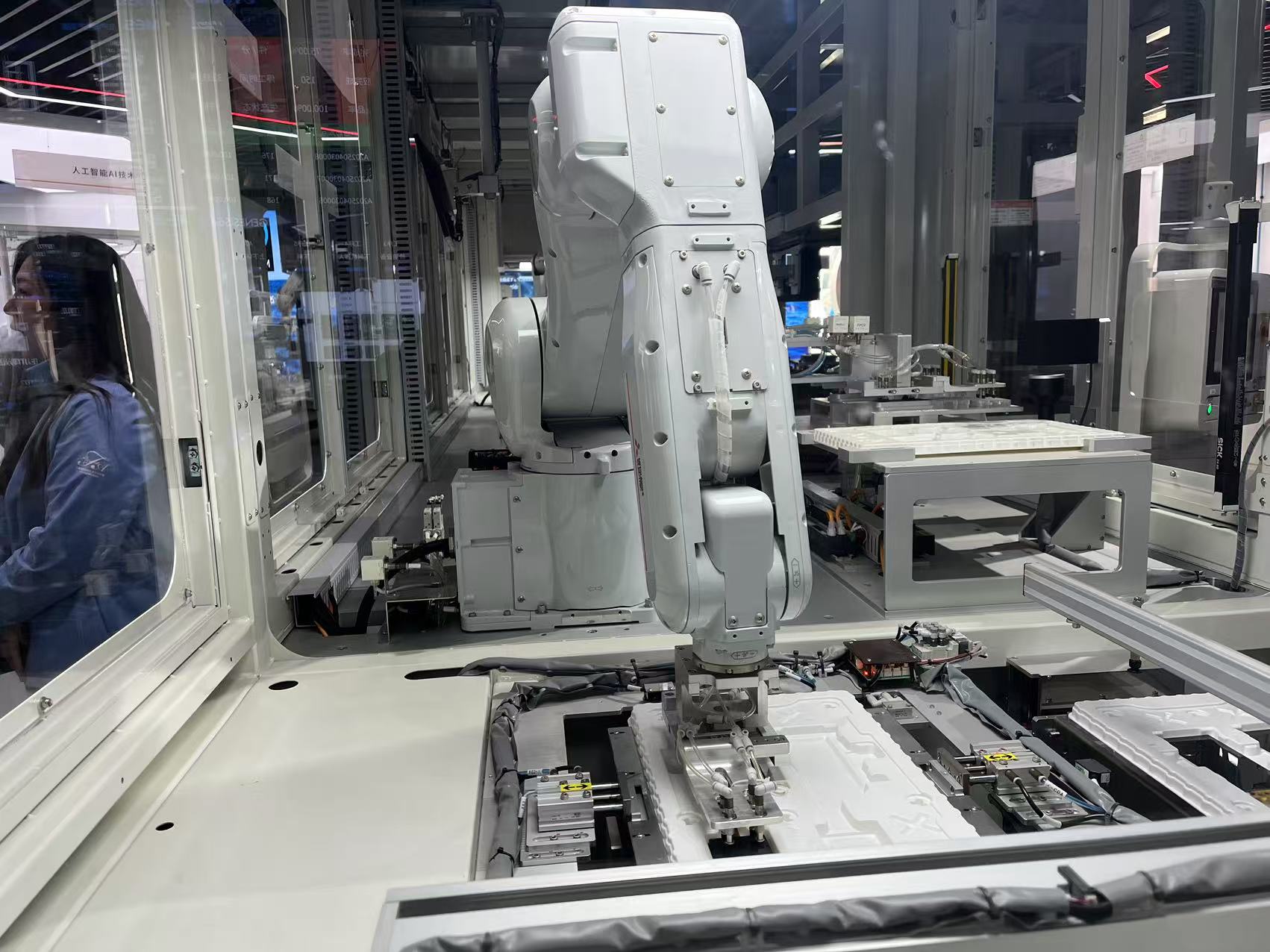 在智能机器人技术展区,团队重点观摩 TOKUFASTbot 高速机器人。其 0.305 秒还原三阶魔方的世界纪录级表现,背后是三菱电机独创的 AI 色彩识别算法与纳米级运动控制技术。在五轴联动机械臂工作站,学生通过力控编程实现柔性装配,系统学习机器人运动学建模与轨迹优化方法。